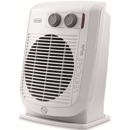 PRODUCT DESCRIPTIONS:The DeLonghi HVF3033MD is an Upright Fan Heater with a rectangular design in white. This fan heater has a 3 kW heat output and a choice of two heat settings with an adjustable thermostat which automatically maintains the desired temperature. The DeLonghi HVF3033MD also has an anti-frost function which avoids the temperature falling below 5-¦C along with a safety thermostat. There is also the option of cool air for great summer ventilation. The De'Longhi HVF3033MD is suggested for rooms up to 60m-¦ and is perfect for bathroom use as it guarantees a high safety level with an IP21 drip protection.This vertical fan heater unit comes with an integrated handle for easy transportation, cord storage and fitted plug.Heat output 3kW2 heat settingsSafety cut out switchFrost protectionThermostatically controlledCool air blow feature with 2 speed settingsWattage: 3000 WHeight: 206 mmColour: WhiteDimensions W: 344mm