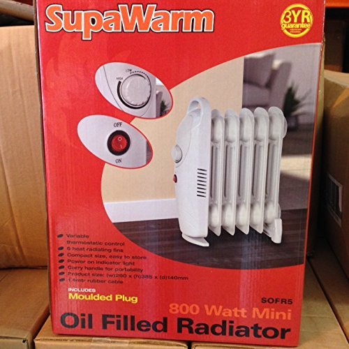 PRODUCT DESCRIPTIONS:SupaWarm Thermostatic Controlled Mini Oil Filled Radiator Heater - 800 Watt