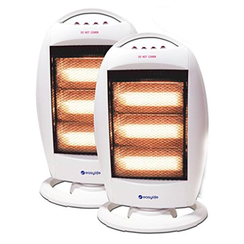 PRODUCT DESCRIPTIONS:Last winter was a reminder that sub-zero temperatures can send a chill through normally warm centrally-heated homes. That's why these Halogen Heaters make such good sense. Hot in seconds, the three power settings - 400w, 800w and 1200w - give you adjustable temperature control. The warmth can be directed to a cold corner or draughty area or the heater can be switched to oscillating mode letting it sweep the entire room. Mains powered and fitted with a safety cut-out switch, they are light, portable and compact at only H54xW32xD10cm. Ideal for bedrooms sparerooms, studies - even garages and conservatories, which poses the question: will one be enough? Order one for only 39.99 and you will receive a second FREE. But hurry, demand is anticipated to be high.