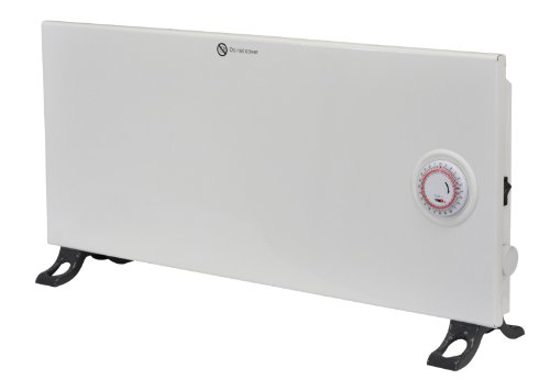 PRODUCT DESCRIPTIONS:A stylish Convector Heater with a slimline design, finished in white and featuring a 24 hour timer. The Convector Heater has a simple-to-use rotary switch for comfort control and overheat safety cut-out as standard for peace of mind. This modern and attractive Convector Heater is ideal for use in the home or small office. It can be wall mounted or floor-standing with the detachable feet (supplied). INSTALLATION INSTRUCTIONS: For free-standing use: Attach the feet to the underneath of the heater using the four 12mm (½") screws (two in each foot) To wall-mount: Referring to the diagram opposite, draw two horizontal lines on the wall 258 mm (10¼") apart, the lower line more than 50 mm (2") from the floor. On the upper line, drill holes 183 mm (7¼") from the centre line, using a 6 mm (¼") masonry bit, and insert a wall plug. On the lower line, drill holes 188 mm (7½") from the centre line using a 6 mm (¼") masonry bit, and insert a wall-plug. Fix the two hook-brackets to the upper holes using the 30 mm (1¼") screws. Fix the two L-shaped brackets to the underside of the, using the 12 mm (½") screws Hang the heater on the hook-brackets using the two 25 mm (1") slots. The L-shaped brackets will now line up with the lower holes in the wall. Attach to the wall using the other two 30 mm (1¼") screws. OPERATIONAL COSTS: At time of going to press, the average cost of electricity is £0.13 per unit (kilowatt-hour). The amount you are being charged will be shown on your electricity bill. At this cost, this product will cost £0.08 an hour to run and this is with the thermostat set to its MAXIMUM. If thermostat is used to regulate the temperature then operating costs will be lower depending on the temperature in the room. WARRANTY INFORMATION: You will receive a 1 Year Warranty when you purchase this item through us. The information on this is in the manual of the product which you will receive in the box.
