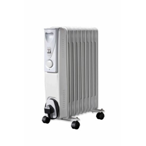 PRODUCT DESCRIPTIONS:Product Description This portable oil filled radiator is the perfect solution to warm up a home, workshop or office. It is highly portable and easy to operate. You can set the temperature you would like and then let the radiator do its job, it will control the room temperature automatically. This is ideal as a low cost heat source for lounges, bedrooms and conservatories. Noiseless operation, Portable with Thermostat control and lightweight, easily moved from room to room to keep the cold away. Product Features: Compact, slim line design Thermostatically controlled Lightweight Box Contains 1 x 2.5kw Oil Filled Radiator