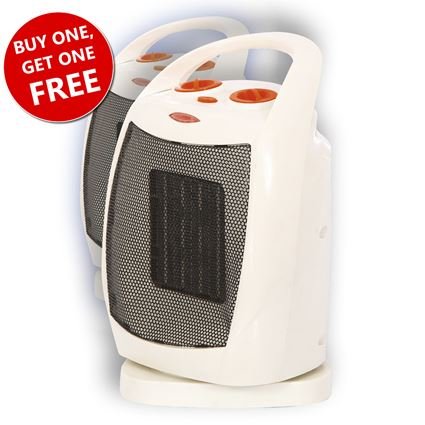 PRODUCT DESCRIPTIONS:This amazing 'white hot' heater offer will keep you nice and toasty during the long winter months. Using the very latest PTC technology it delivers a massive 1500 watts of heat or a more modest 750 watts if required and within minutes (extra fast heat-up time) you'll be bathed in snuggly warmth. For maximum warming efficiency it oscillates 180 degrees from side-to-side to heat all corners of a room. Positive Temperature Coefficient (PTC) Ceramic Heating technology provides all the advanced features and benefits you could ever want from a really good portable heater: fast heat up time (unlike oil filled heaters) reduced energy consumption (compared to convector/halogen heaters), and complete safety and reliability. They can be used anywhere in the home or office. Plus, when you buy one of these Eckman oscillating heaters, we'll send you another completely free!