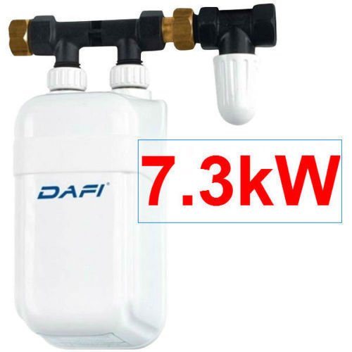 PRODUCT DESCRIPTIONS:The DAFI Instantaneous Electric Water Heater is a compact, energy-saving and convenient solution to providing instant hot water to any point in a building. Compact shape and small size allows under sink mounting. Undersink Water Heater Heats On Demand Can be used with standard mixers & taps. Small & Compact Water Heater Part Number DAFI 7,3 Item Weight 898 g Product Dimensions 16.1 x 9.1 x 8.6 cm Manufacturer reference DAFI 7,3 Voltage 230 volts Wattage 7300 watts Weight 900 gram