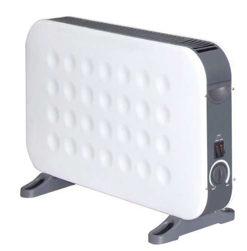 PRODUCT DESCRIPTIONS:Stylish 2 kW Convector heater in white with 2 Heat settings and simple, push button controls. Including a fully adjustable thermostat and overheat safety cut-out features as standard. This attractive 2 kW Convector Heater can be wall mounted or floor-standing and has a contemporary 'circles' design to the front/back panels.